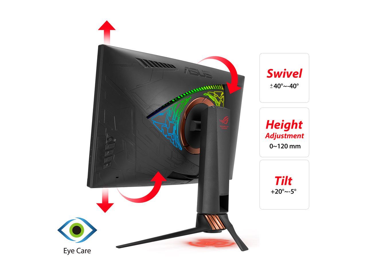 - Marathon ready with game-grade ergonomics such as tilt, swivel and height adjustments and ASUS Eye Care Technology to reduce eyestrain via blue light filter and flicker-free backlighting