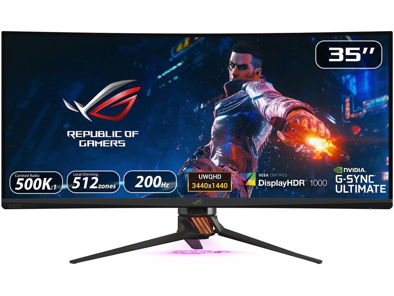 ASUS ROG Swift PG35VQ 35" 21:9 Ultra-WQHD 3440 x 1440 2K Resolution 200Hz 2ms HDMI, DisplayPort NVIDIA G-SYNC HDR-10 Flicker-Free Low Blue Light LED Backlit Curved Gaming Monitor