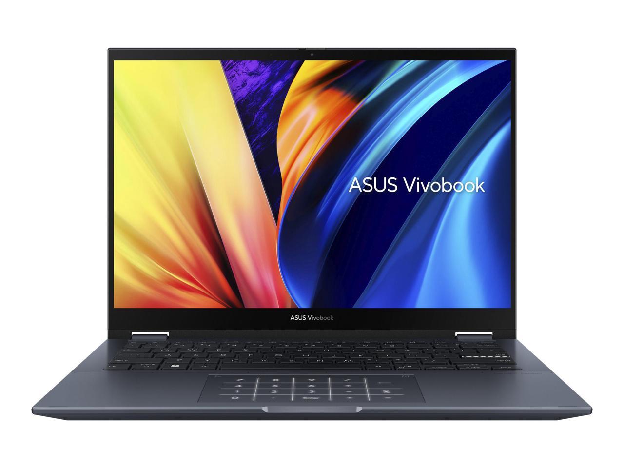 - Asus VivoBook Flip 14 - Flip for Your Creative Vibe. Asus VivoBook Flip 14 is back with a bold new look to get your pulse racing. This is a convertible laptop thats full of personality, sporting a sleek finish and a color-blocked Enter key with yellow edges and text. Ready for performance, a sturdy 360 hinge holds the display firmly at any angle, giving you the flexibility to use VivoBook Flip 14 as a traditional laptop, a tablet, or anything in between.