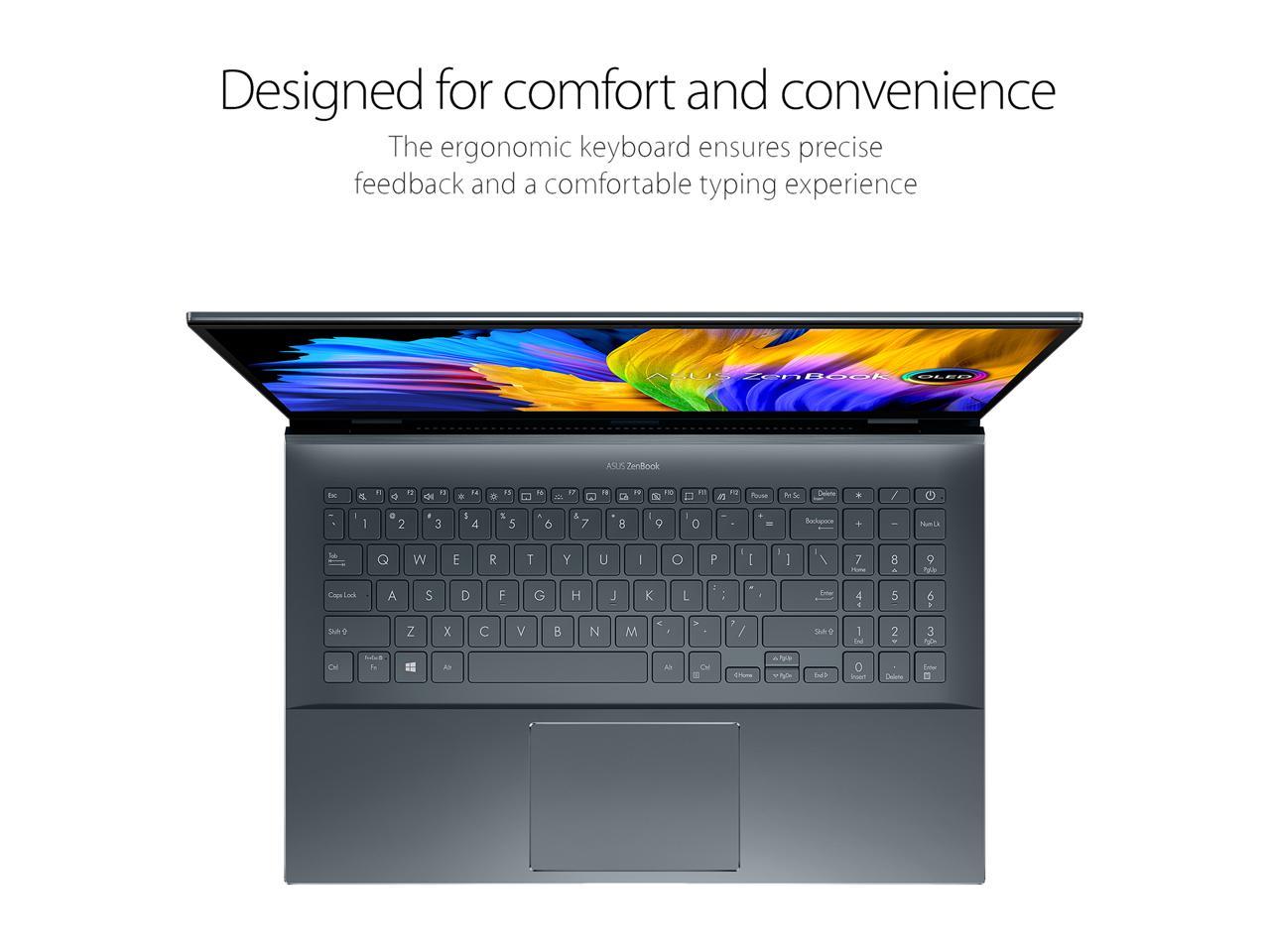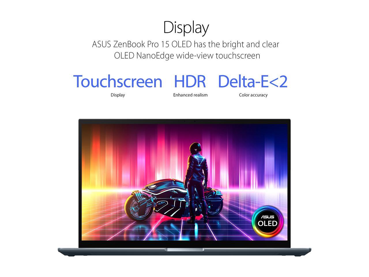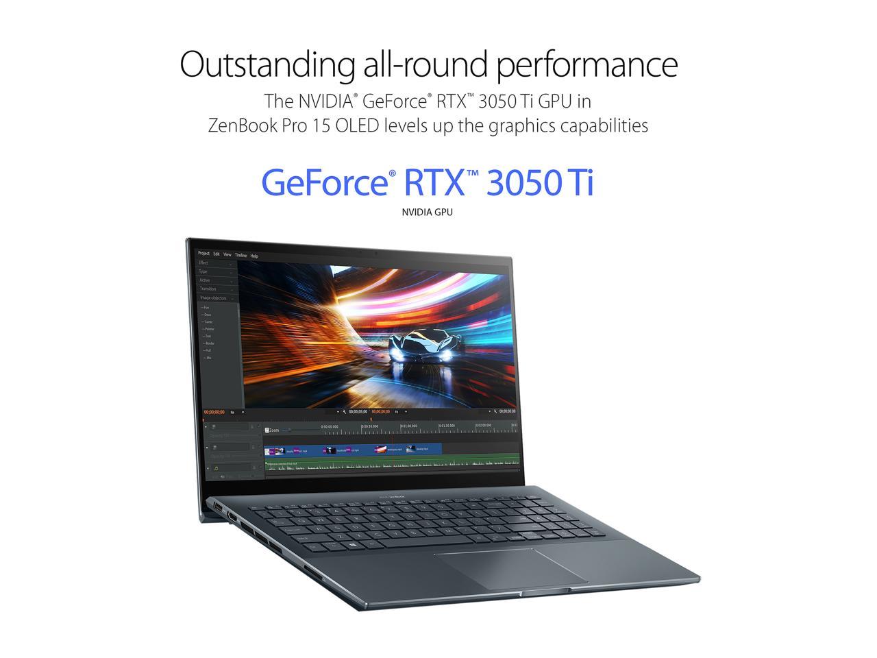 ASUS ZenBook Pro 15 OLED Laptop 15.6" FHD Touch Display, AMD Ryzen 7 5800H CPU, NVIDIA GeForce RTX 3050 Ti GPU, 16GB RAM, 512GB PCIe SSD, Windows 11 Pro, Pine Grey, UM535QE-XH71T