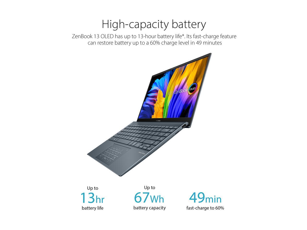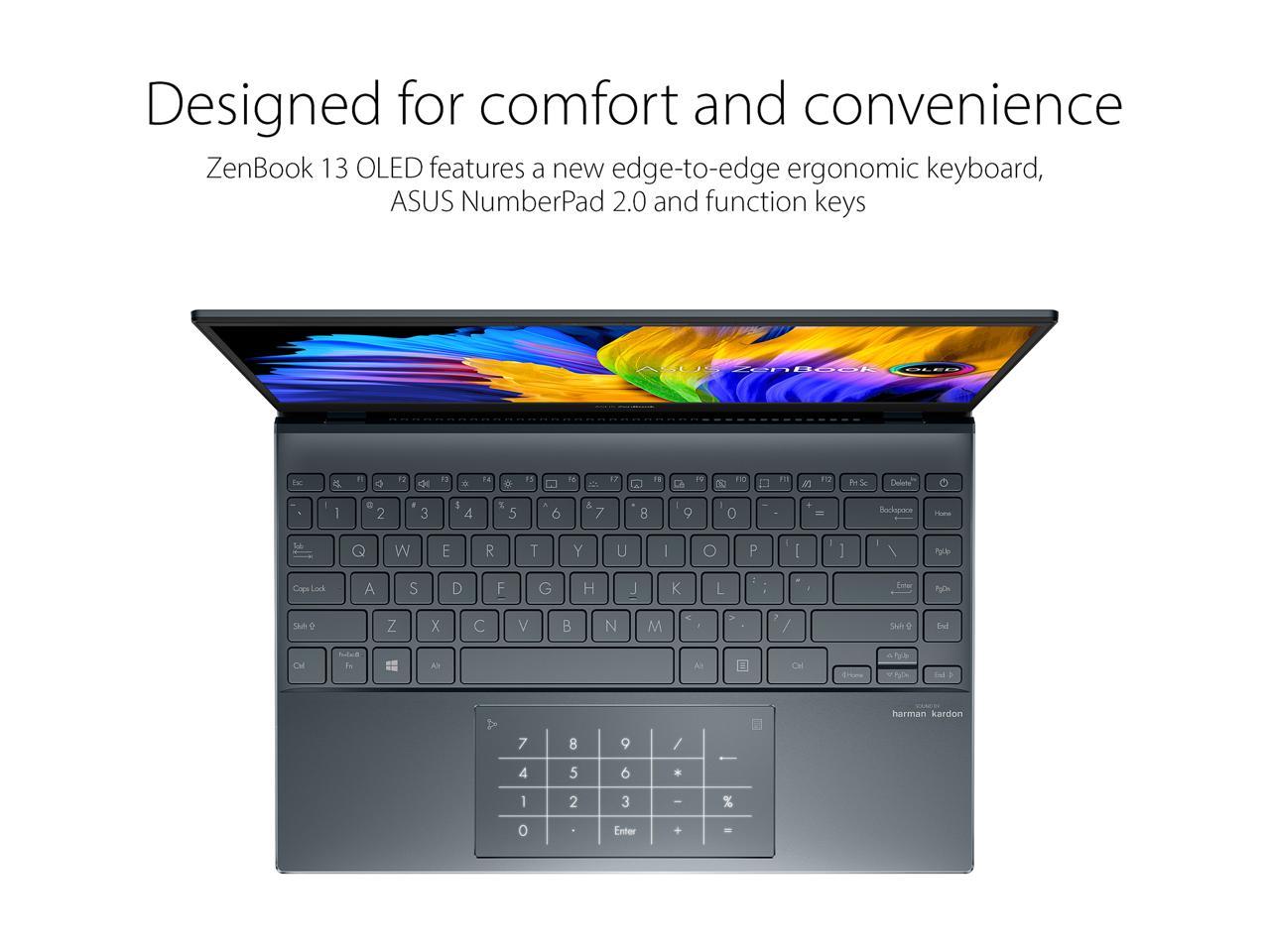 ASUS ZenBook 13 Ultra-Slim Laptop, 13.3" OLED FHD NanoEdge Bezel Display, Intel Core i7-1165G7, 8GB LPDDR4X RAM, 512GB SSD, NumberPad, Thunderbolt 4, Wi-Fi 6, Windows 11 Home, AI Noise-Cancellation, Pine Grey, UX325EA-EH71