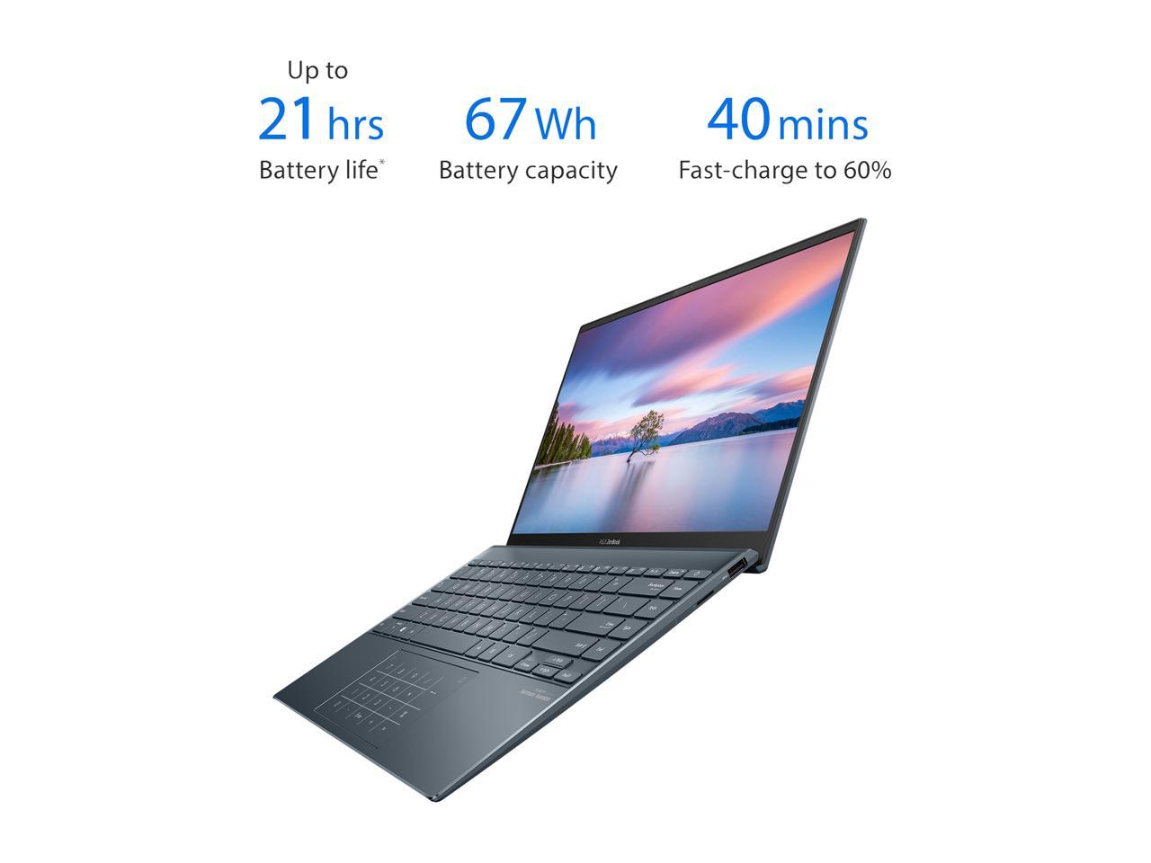ASUS ZenBook 14 Ultra-Slim Laptop 14" Full HD NanoEdge Display, Intel Core i5-1135G7, 8GB RAM, 512GB PCIe SSD, NumberPad, Thunderbolt 4, Windows 10 Home, AI Noise-cancellation, Pine Grey, UX425EA-EH51
