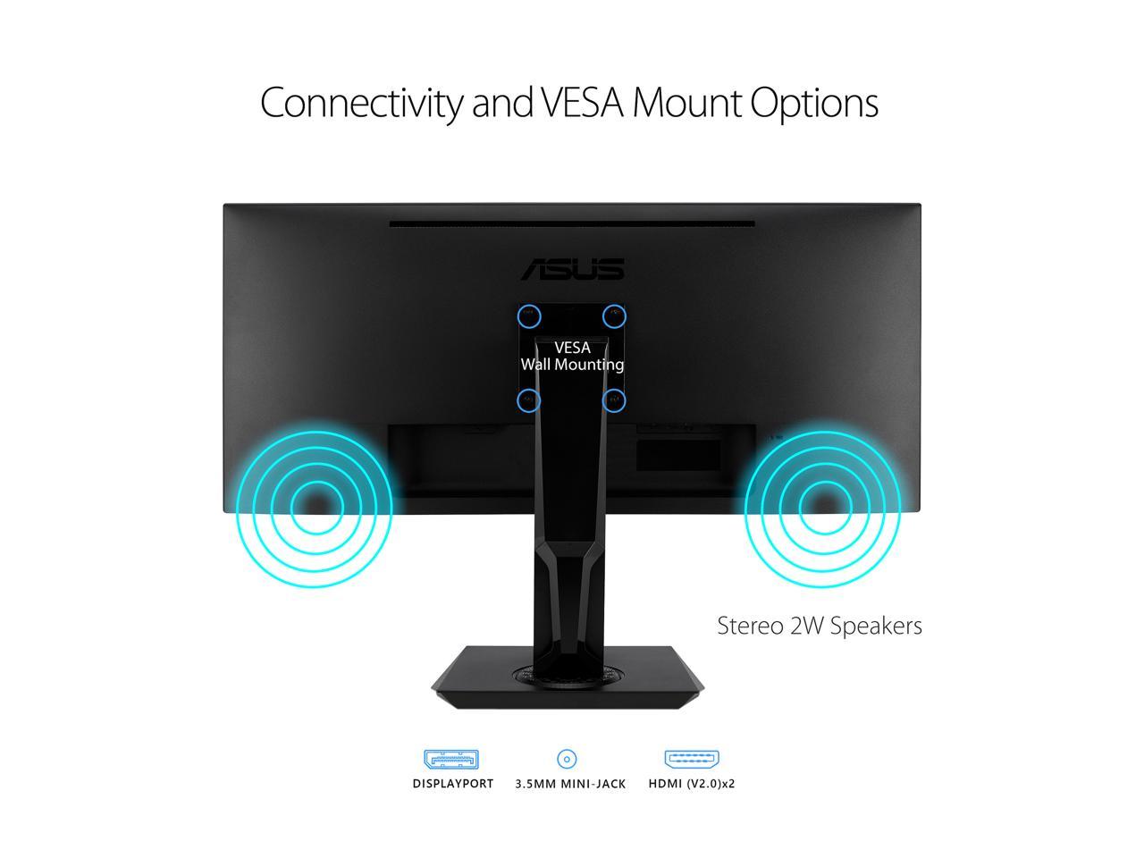 ASUS VP348QGL 34" Quad HD 3440 x 1440 75Hz 4ms 2xHDMI DisplayPort Adaptive-SYNC/FreeSync HDR-10 Blue Light Filter Flicker Free Asus Eye Care Built-in Speakers Ultra Wide Backlit LED Gaming Monitor