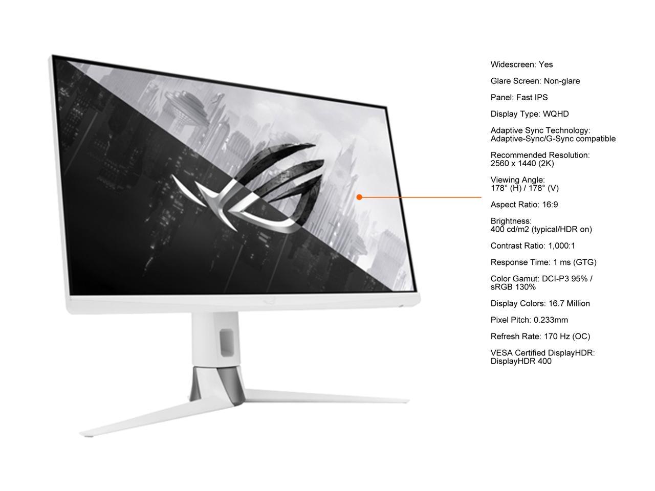 ASUS ROG Strix XG27AQ-W 27" 1440P HDR Gaming Monitor - White, QHD (2560 x 1440), Fast IPS, 170Hz, 1ms, Extreme Low Motion Blur Sync, G-SYNC Compatible, Eye Care, HDMI, DisplayPort, USB, DisplayHDR400