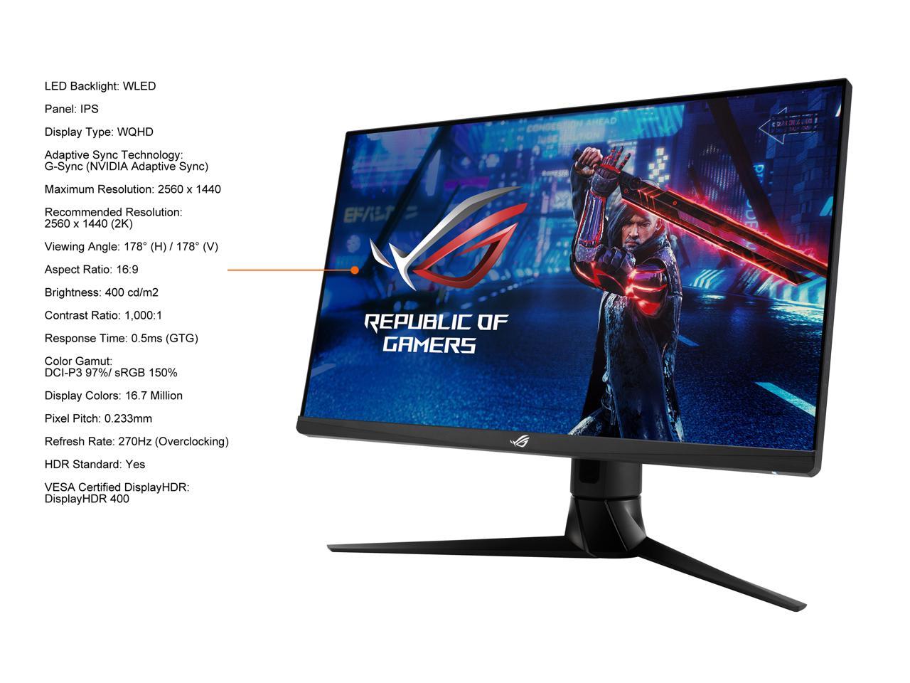 ASUS ROG Strix 27" 1440P HDR Gaming Monitor (XG27AQM) - QHD (2560 x 1440), Fast IPS, 270Hz, 0.5ms, Extreme Low Motion Blur Sync, G-SYNC Compatible, DisplayHDR 400, Eye Care, DisplayPort, HDMI, USB 3.0