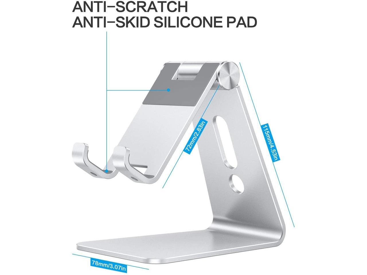 Durable Adjustable Cell Phone Stand, Aluminum Desktop Phone Holder Dock Compatible with iPhone 12 Mini, iPhone 12 Pro Max, 11 Pro, XR, 8 Plus 7 6, Samsung Galaxy, Google Pixel and More, Silver