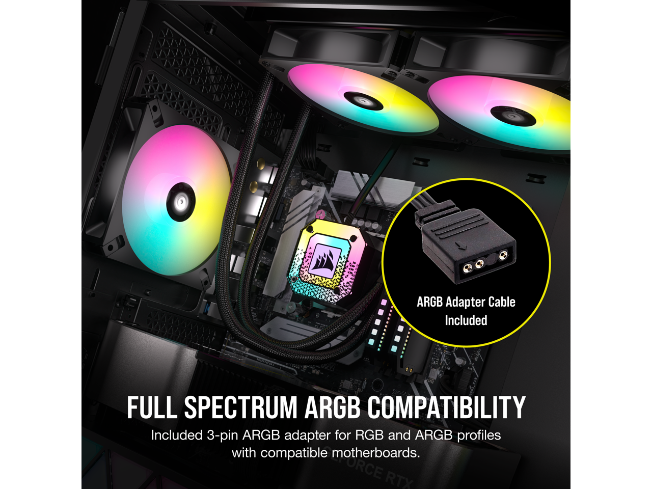 - ARGB Compatible: An included 3-pin ARGB adapter enables the use of RGB and ARGB profiles right out of the box with compatible motherboards using a standard 5V motherboard ARGB header, no controllers necessary.