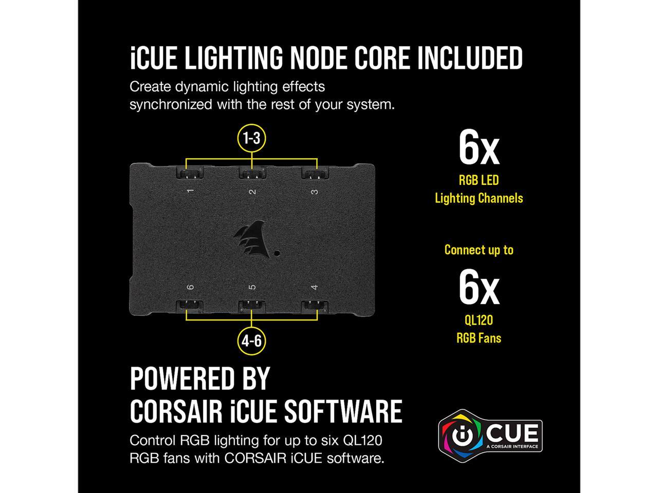 - Use the included compact iCUE Lighting Node CORE to easily control RGB lighting via CORSAIR iCUE software, cutting down cable clutter with simple USB 2.0 and SATA connections