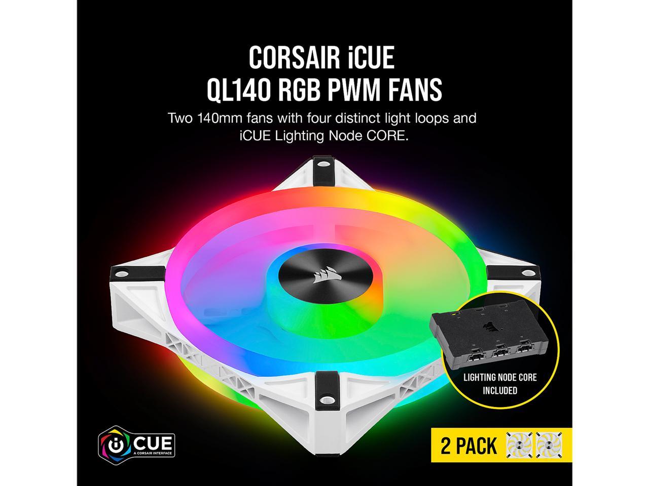 CORSAIR QL Series, iCUE QL140 RGB, 140mm RGB LED PWM White Fan, Dual Fan Kit with Lighting Node CORE - CO-9050106-WW