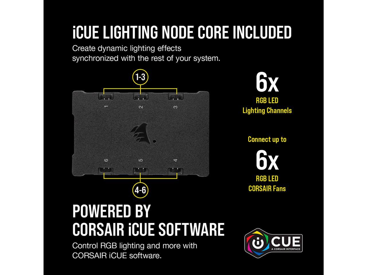 - Use the included compact iCUE Lighting Node CORE to easily control RGB lighting via CORSAIR iCUE software, cutting down cable clutter with simple USB 2.0 and SATA connections.