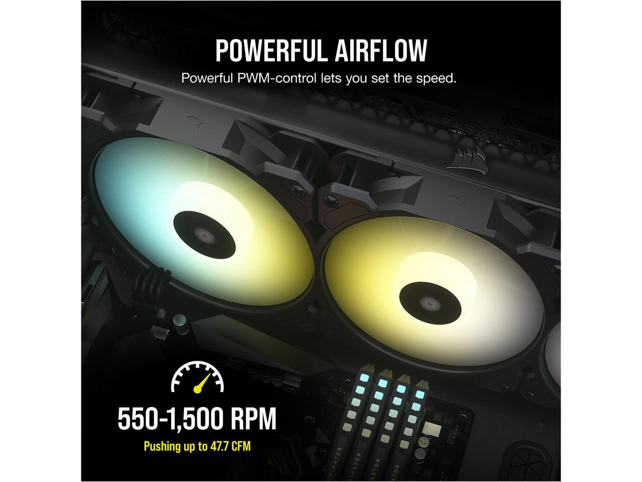 - Eight Individually Addressable RGB LEDs: Complete your CORSAIR SP RGB ELITE-cooled system with an additional fan, equipped with eight LEDs around the hub.