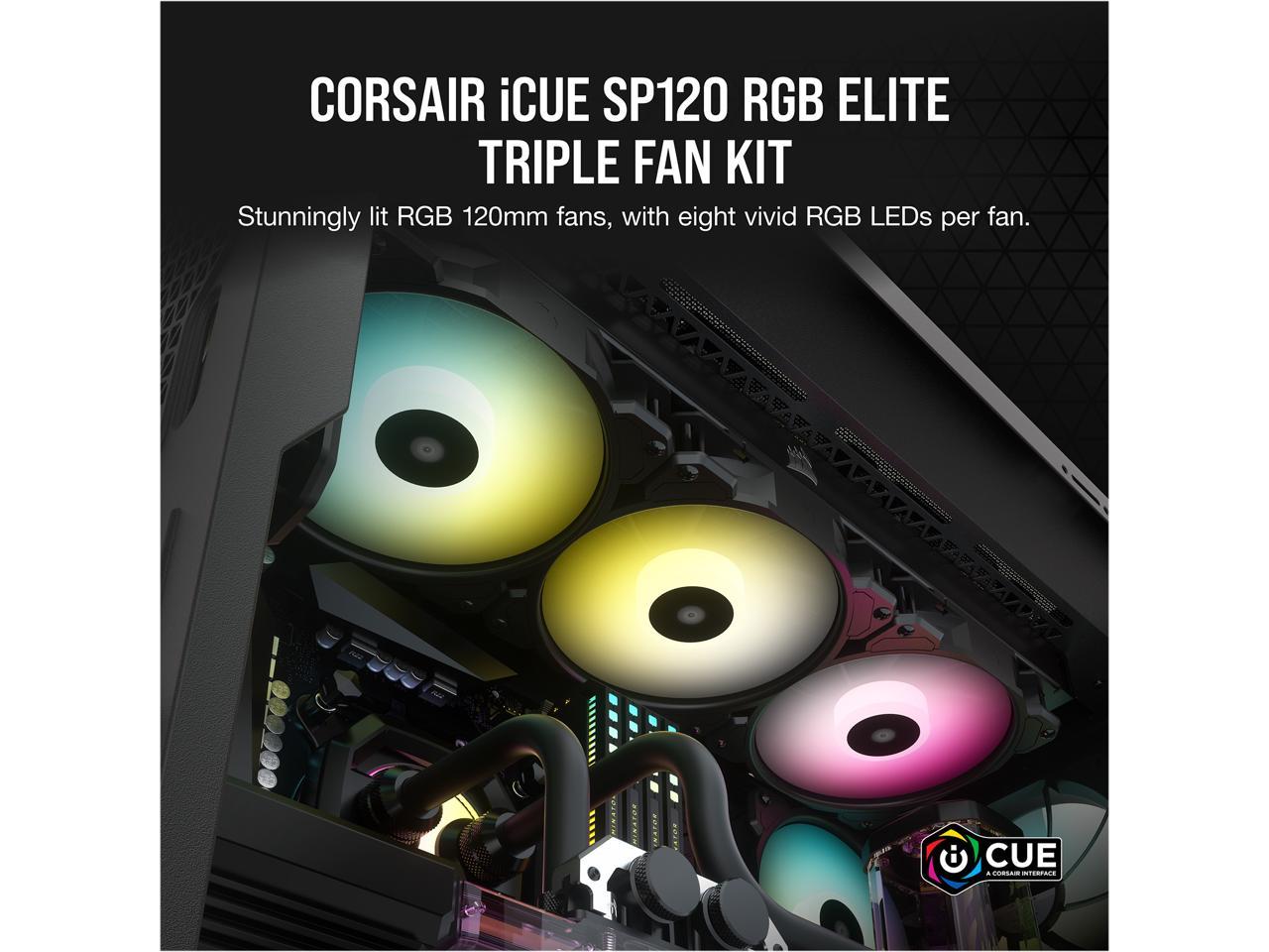 CORSAIR iCUE SP120 RGB ELITE Performance 120mm PWM Triple Fan Kit with iCUE Lighting Node CORE, CO-9050109-WW