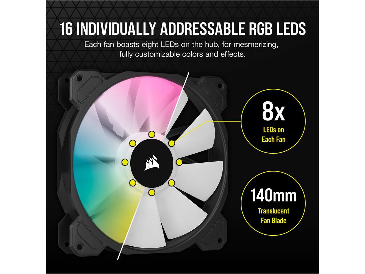 - Eight Individually Addressable RGB LEDs: Complete your CORSAIR SP RGB ELITE-cooled system with an additional fan, equipped with eight LEDs around the hub.