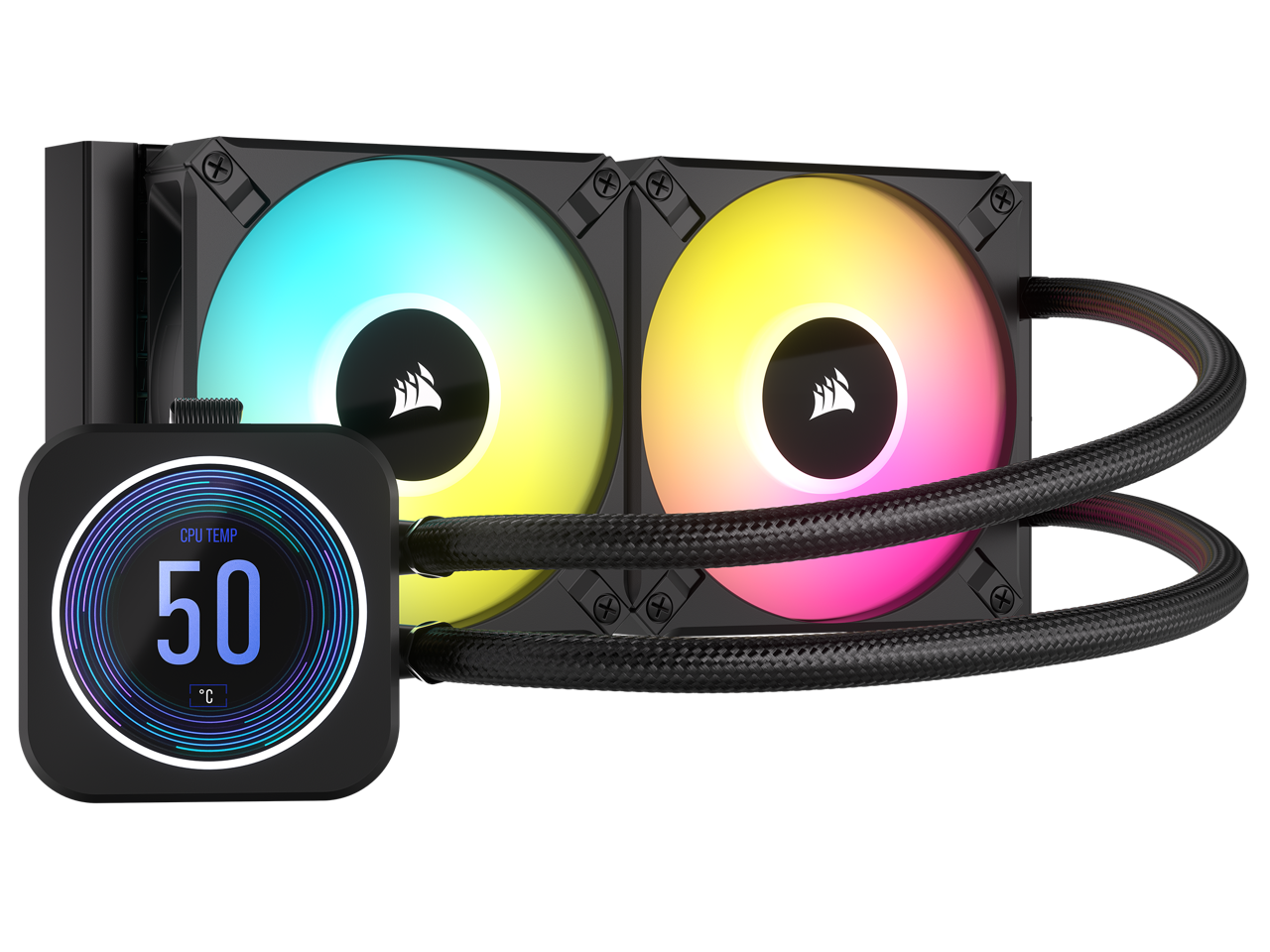 CORSAIR iCUE H100i ELITE LCD XT Liquid CPU Cooler - IPS LCD Screen - AF120 RGB ELITE Fans - 240mm Radiator - Fits Intel® LGA 1700, AMD® AM5, and More