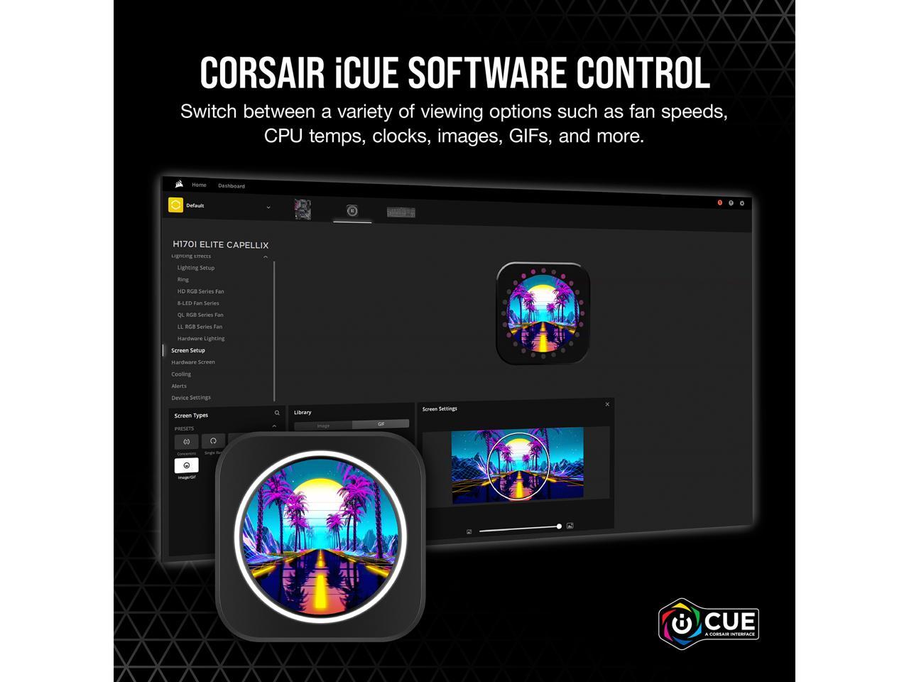 - Lighting: RGB via iCUE; IPS LCD via iCUE