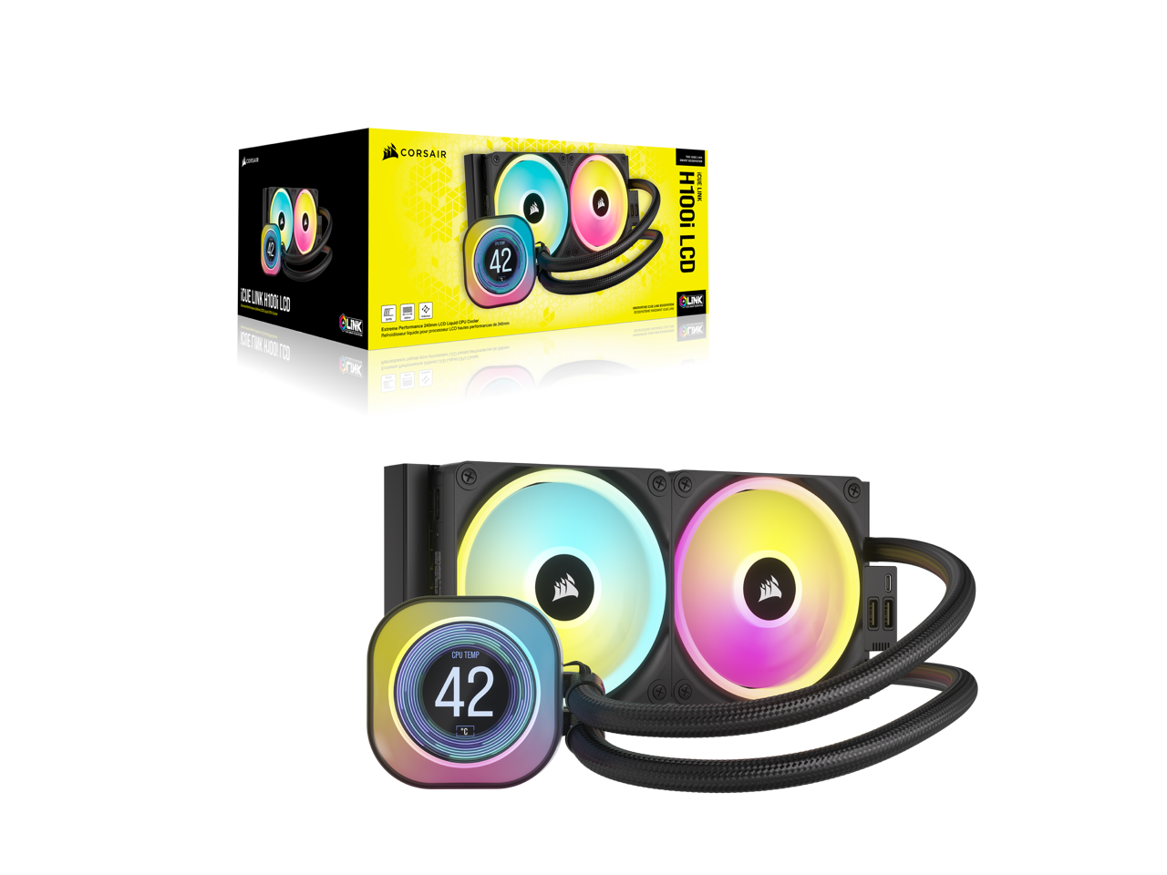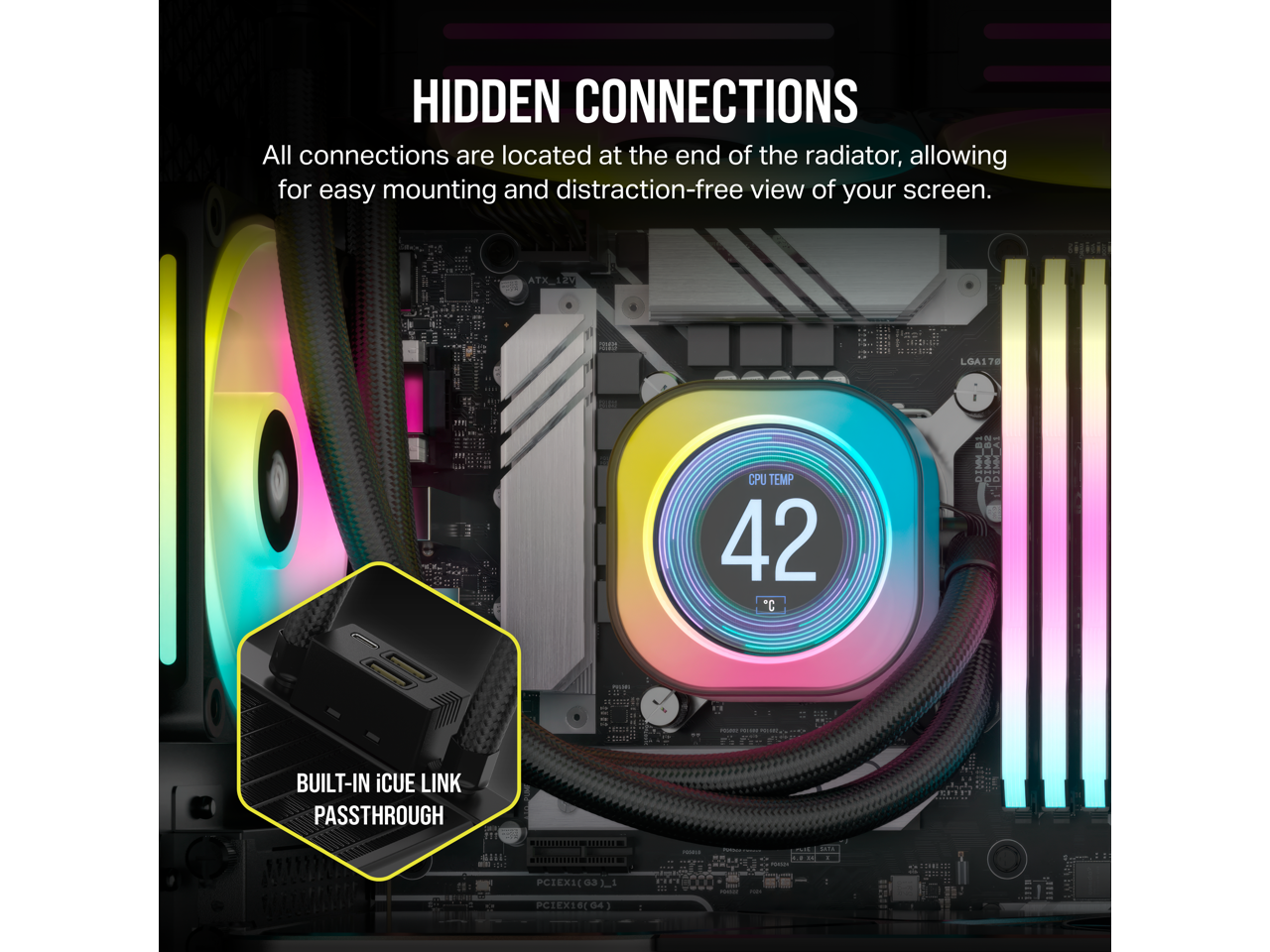 CORSAIR iCUE LINK H100i LCD Liquid CPU Cooler - QX120 RGB Fans - 2.1” IPS LCD screen - 240mm Radiator - Fits Intel LGA 1700, AMD AM5 - iCUE LINK System Hub Included