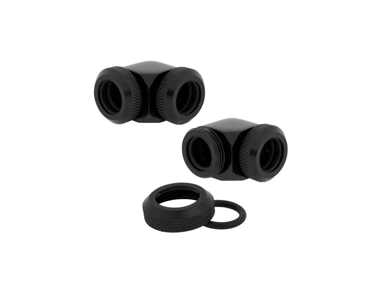 Corsair Hydro X Series XF Hardline 90 Degree Fittings, 12mm OD, Black, 2-pack