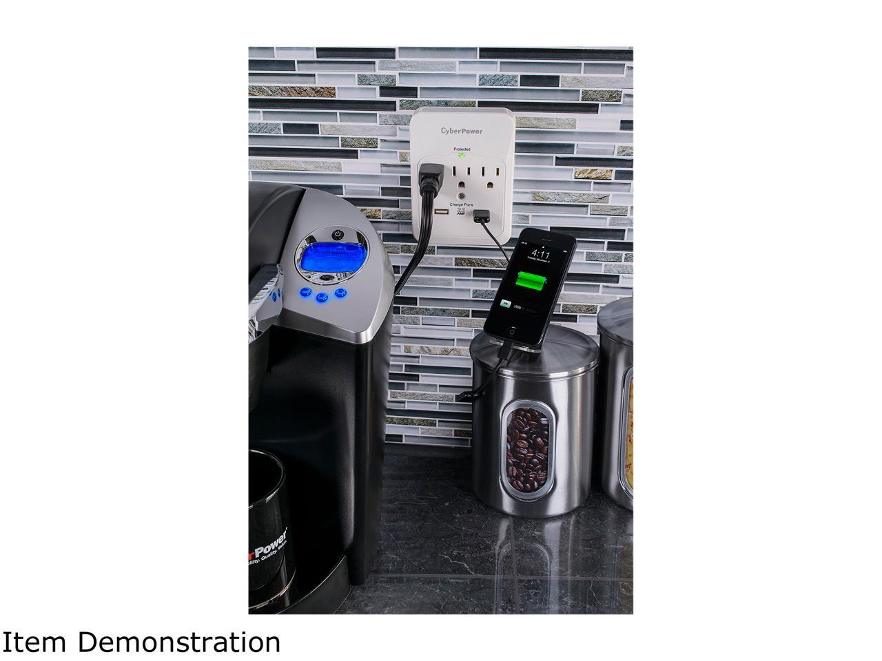 CyberPower CSP300WUR1 Surge Protector 3-AC Outlet with 2 USB Charging Ports