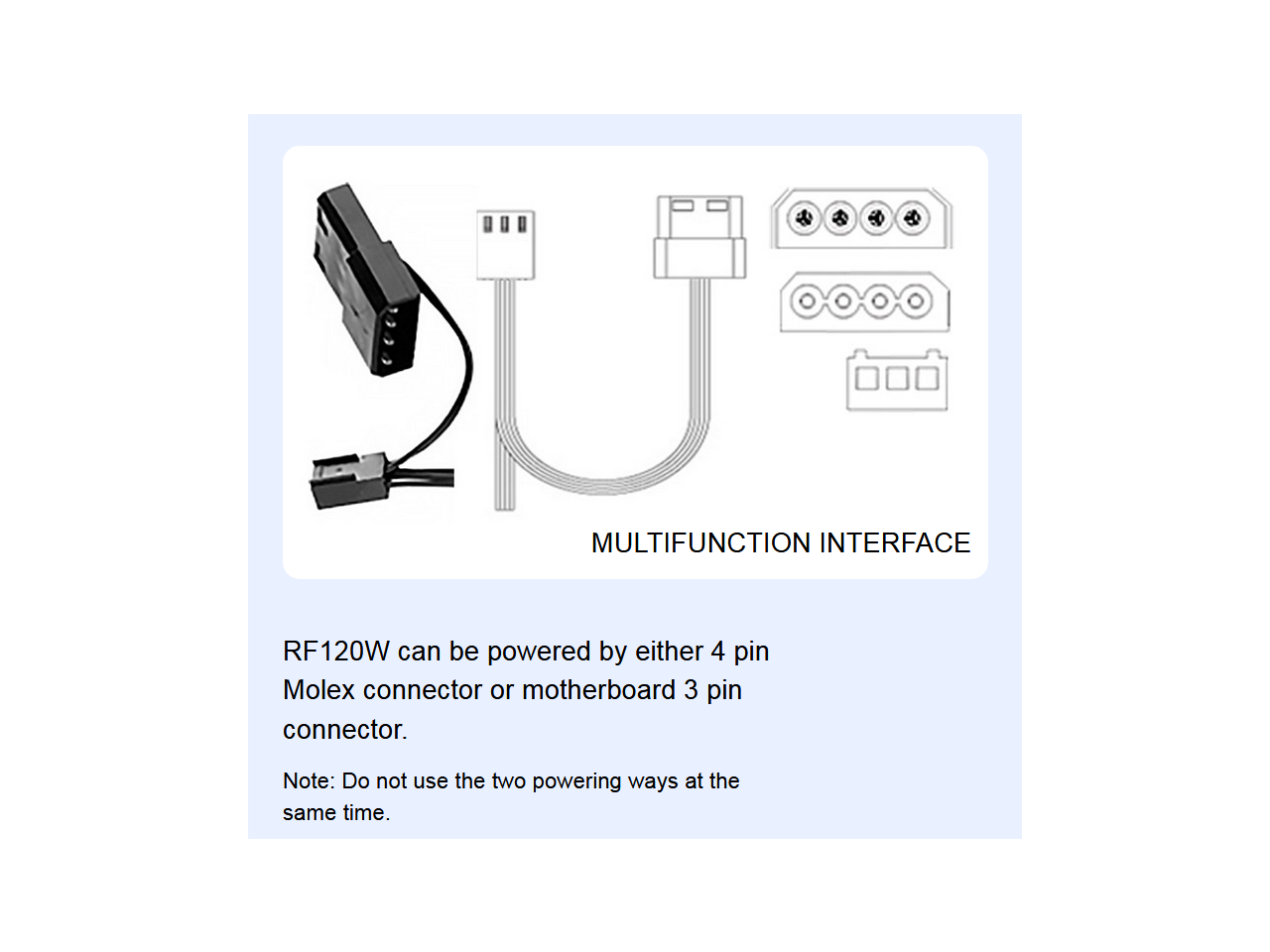 - Power Connector:3-pin for Motherboard / LP4(Molex IDE 4-pin, NOT PWM Mini 4-pin) for PSU