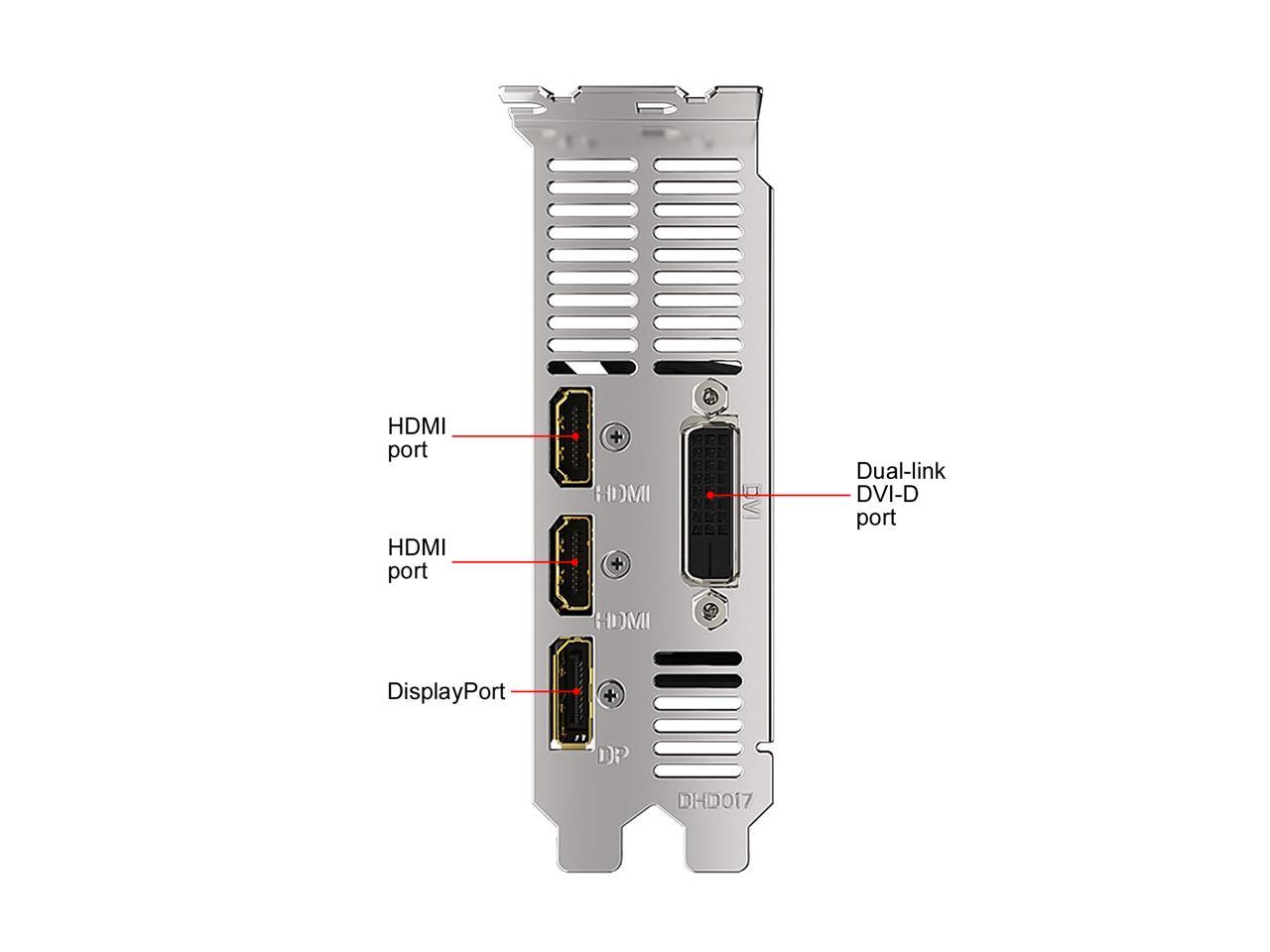 - 1 x Dual-link DVI-D 2 x HDMI 2.0b 1 x DisplayPort 1.4