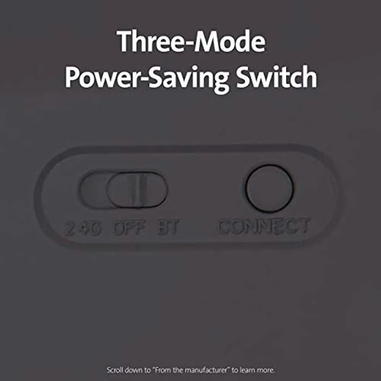 - Three-mode power-saving switch allows you to toggle between 2.4GHz, Bluetooth, and Off for best battery life.