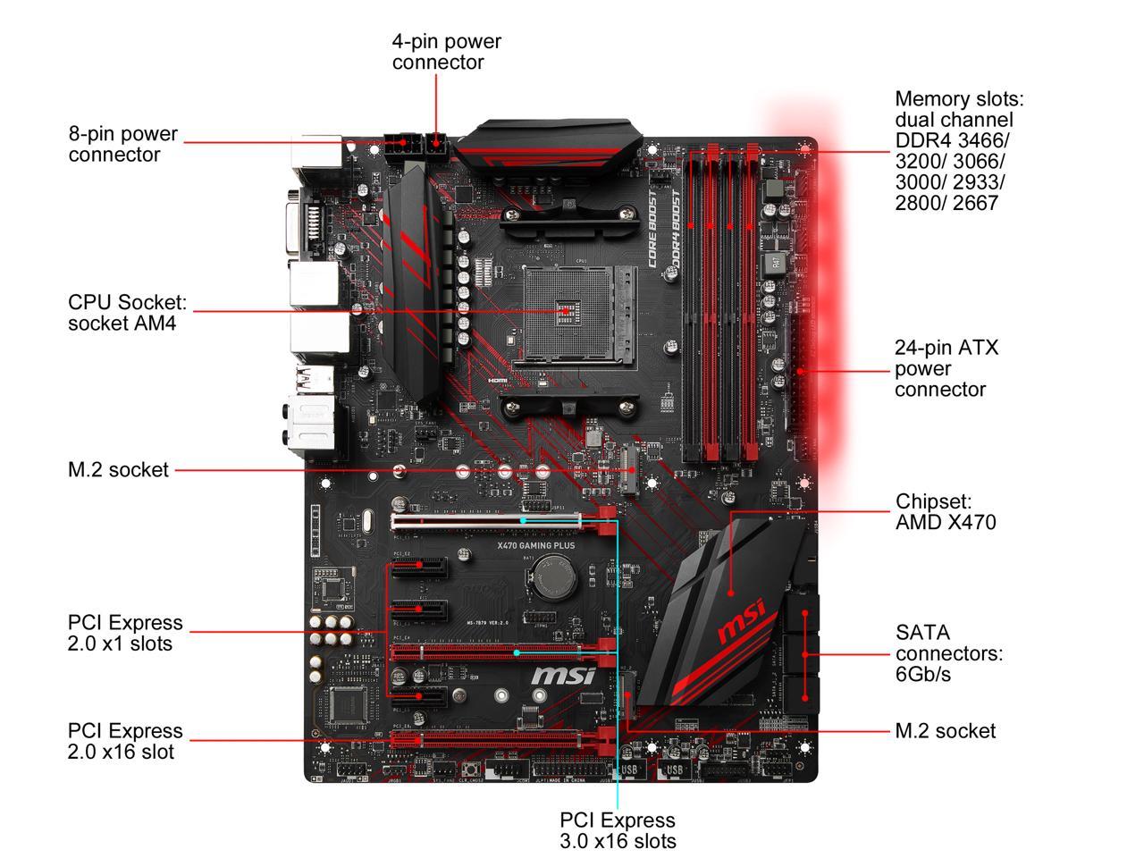 MSI PERFORMANCE GAMING X470 GAMING PLUS AM4 AMD X470 SATA 6Gb/s USB 3.1 HDMI ATX AMD Motherboard