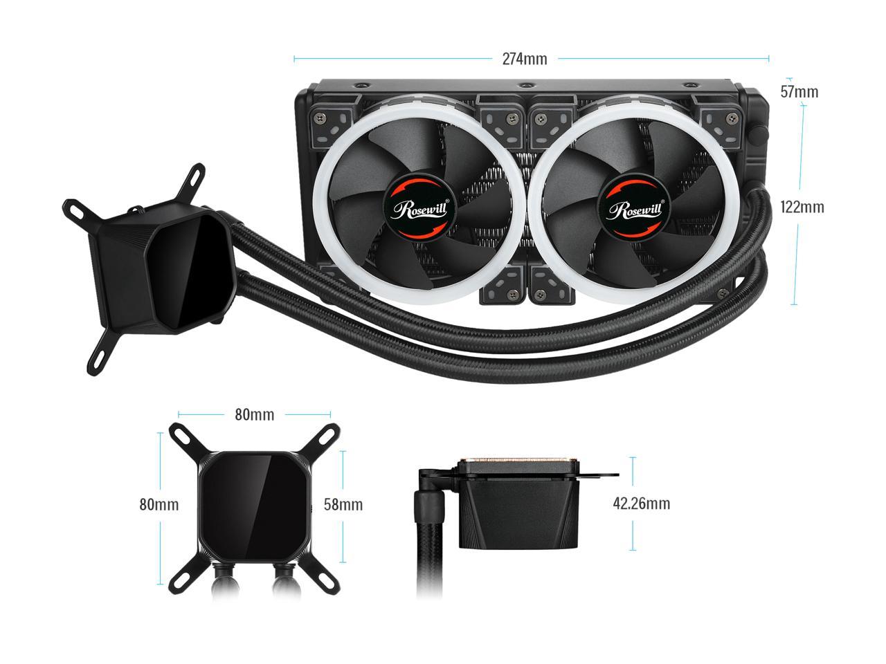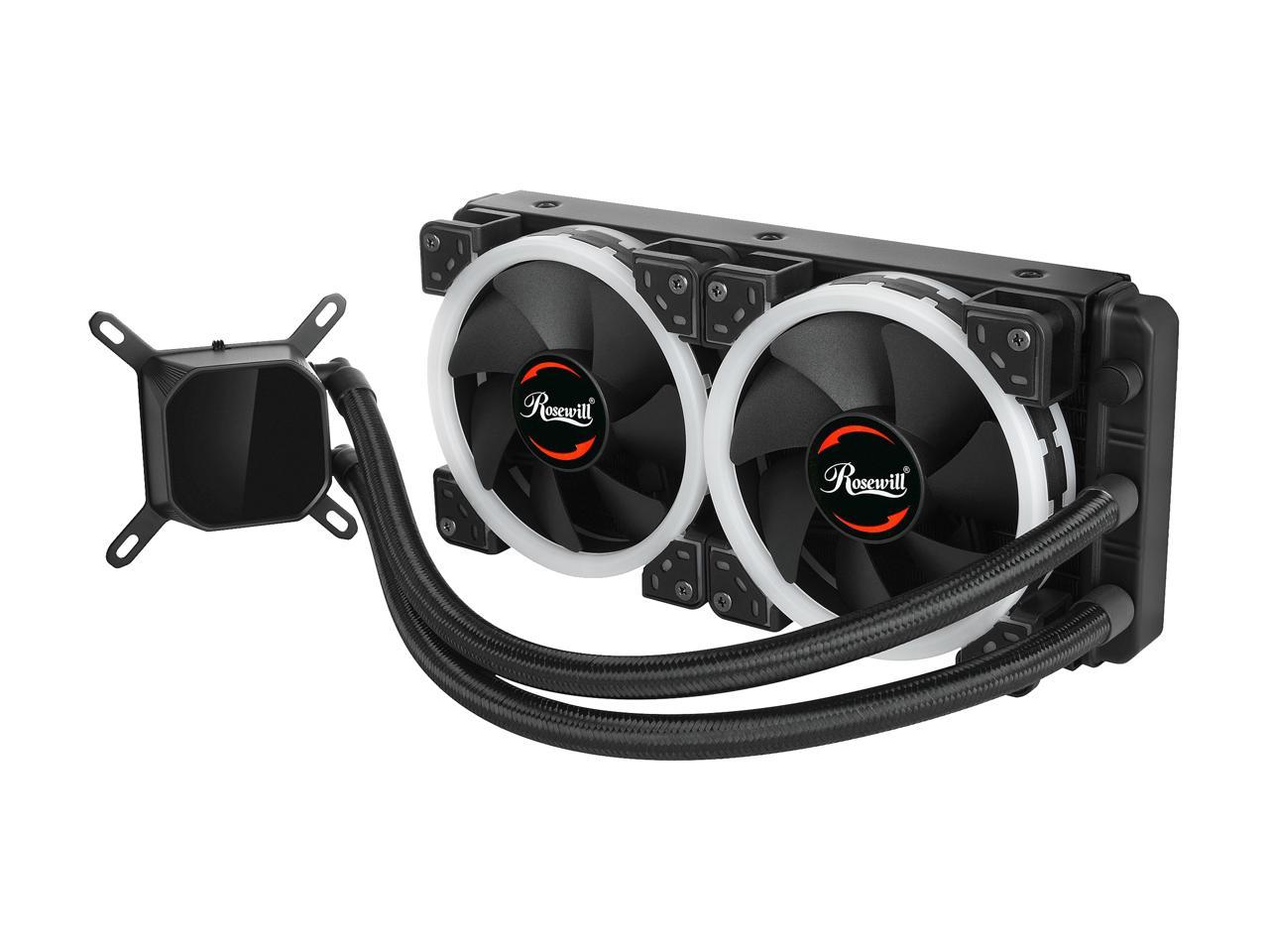 Rosewill RGB AIO 240mm CPU Liquid Cooler, Closed Loop PC Water Cooling, Quiet Addressable RGB Ring Fans, Intel/AMD Compatible, 400mm Sleeved Tubing - PB240-RGB