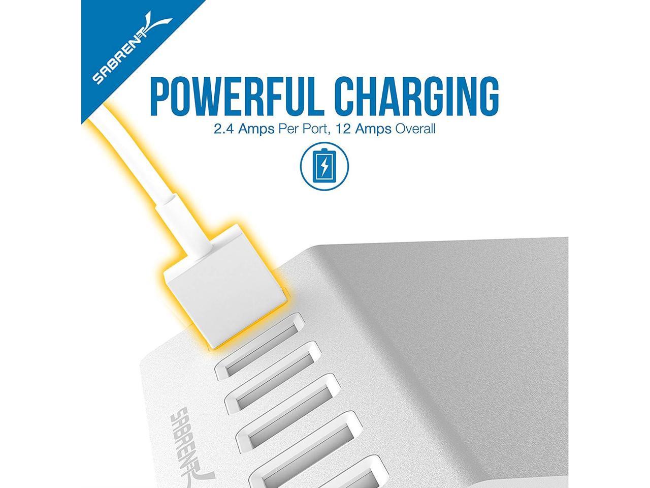 Sabrent Premium 60 Watt (12 Amp) 6-Port Aluminum Desktop USB Rapid Charger, Silver (AX-FLCH)