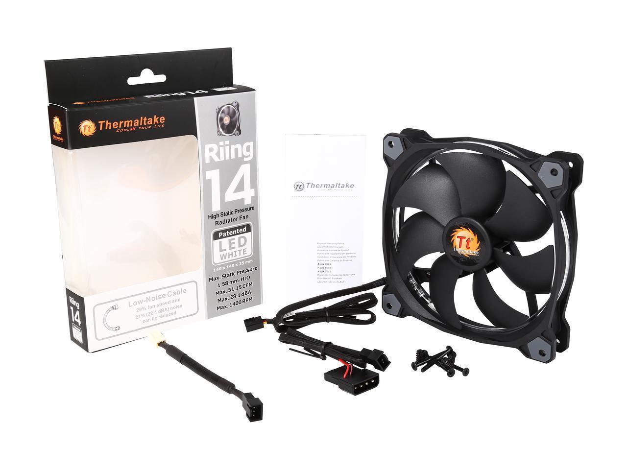 Thermaltake Riing 14 Series High Static Pressure 140mm Circular White LED Ring Case/Radiator Fan CL-F039-PL14WT-A