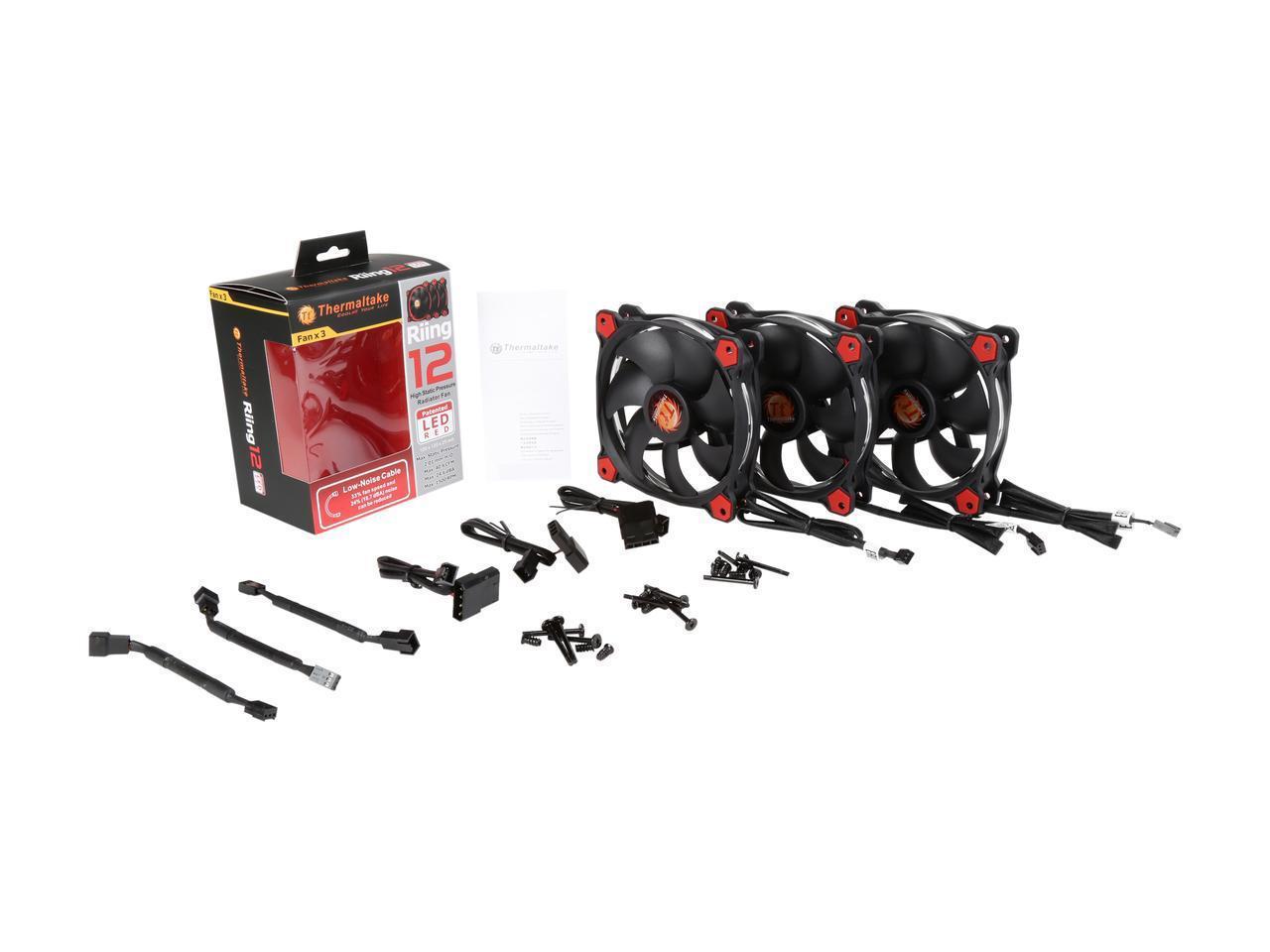 Thermaltake CL-F055-PL12RE-A Riing 12 High Static Pressure 120mm Circular Ring LED Case/Radiator Fan with Anti-vibration Mounting System - Red - 3 PKS