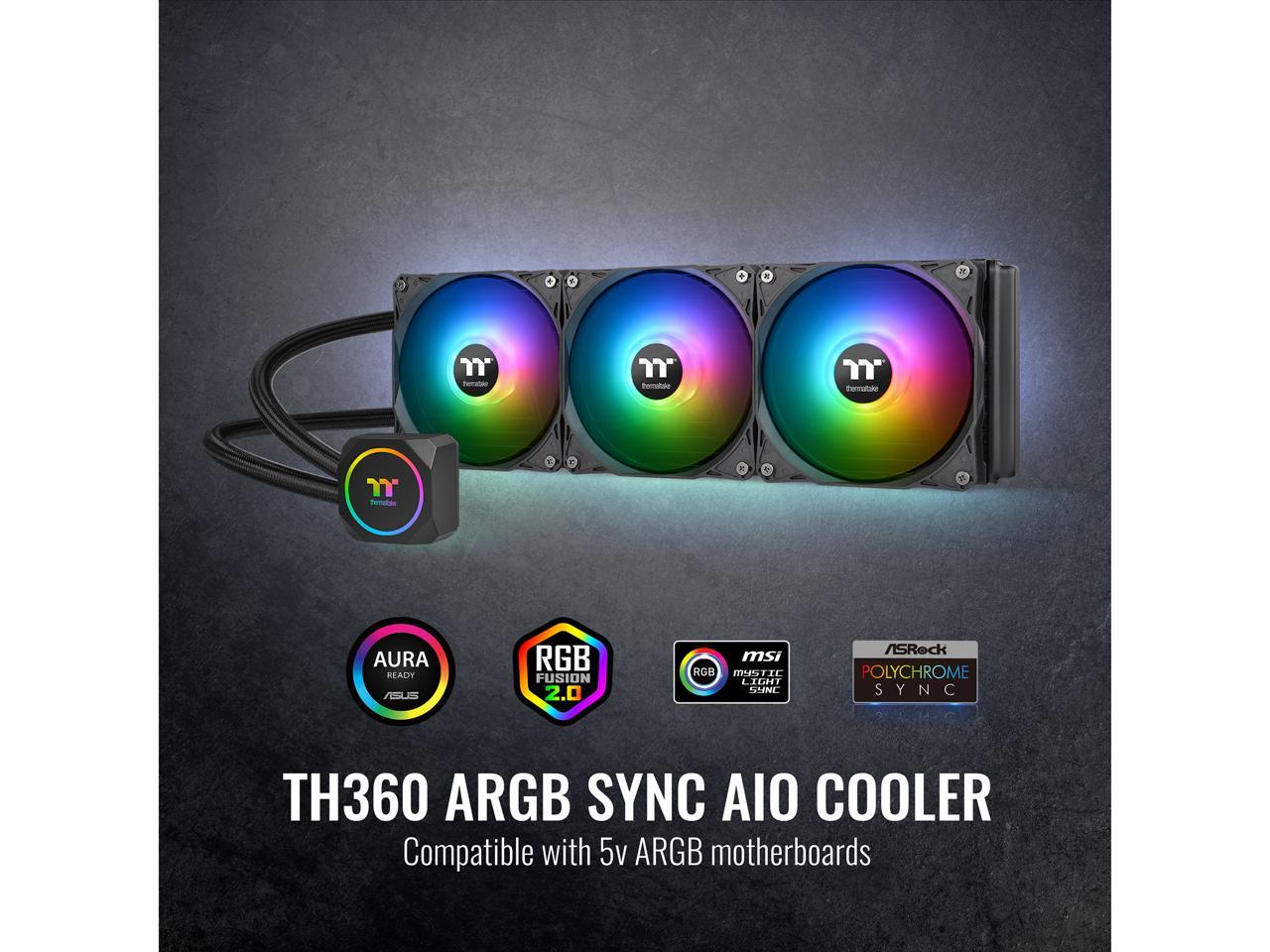 Thermaltake TH360 ARGB Motherboard Sync Edition Intel/AMD All-in-One Liquid Cooling System 360mm High Efficiency Radiator CPU Cooler, CL-W300-PL12SW-A