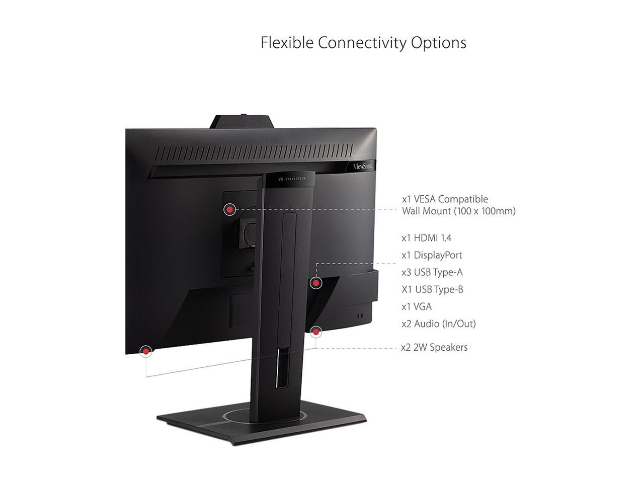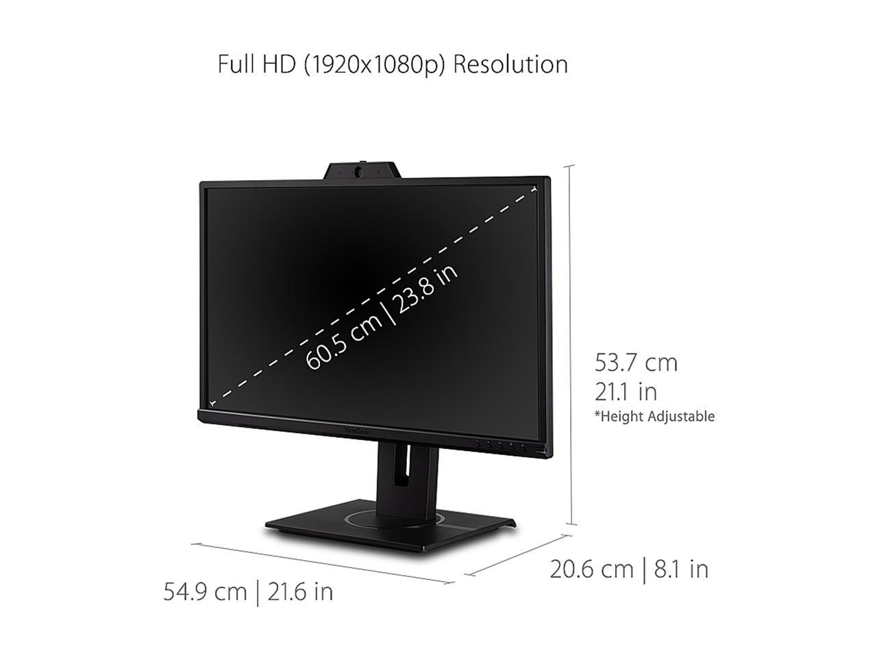 ViewSonic VG2440V 24 Inch 1080p IPS Video Conferencing Monitor with Integrated 2MP Camera, Microphone, Speakers, Eye Care, Ergonomic Design, HDMI DisplayPort VGA Inputs for Home and Office