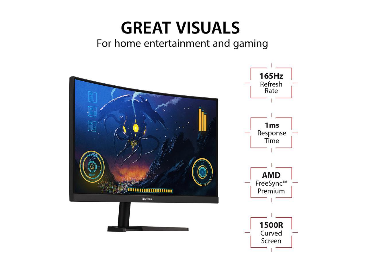 ViewSonic VX2468-PC-MHD 24 Inch Full HD 1080p 165Hz 1ms Curved Gaming Monitor with AMD FreeSync Premium Eye Care Frameless HDMI and Display Port